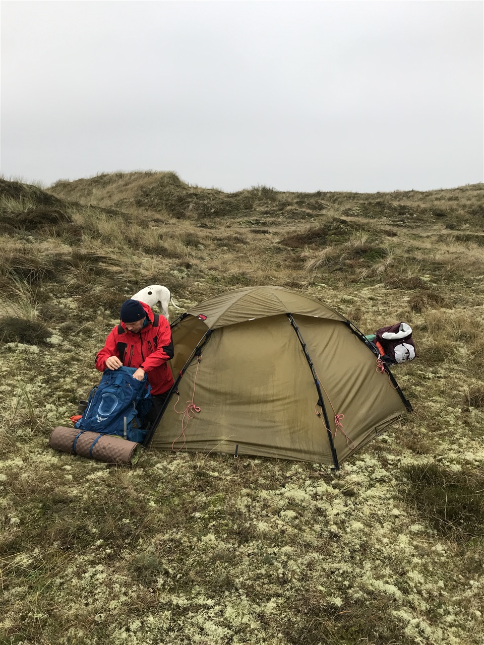 Vi lavede suppe og kunne vi sidde og nyde den smukkeste stjernehimmel inden vi krøb i teltet ved 19 tiden. Det var ret koldt og fugtigt efterhånden. Teltet var dog hyggeligt som sædvanligt med en skrøne og min tæer på Lars mave. Det var blevet iskolde og trængte til en opvarmning. Jeg lærte på den hårde måde, at det ikke går uden uldsokker 🙂