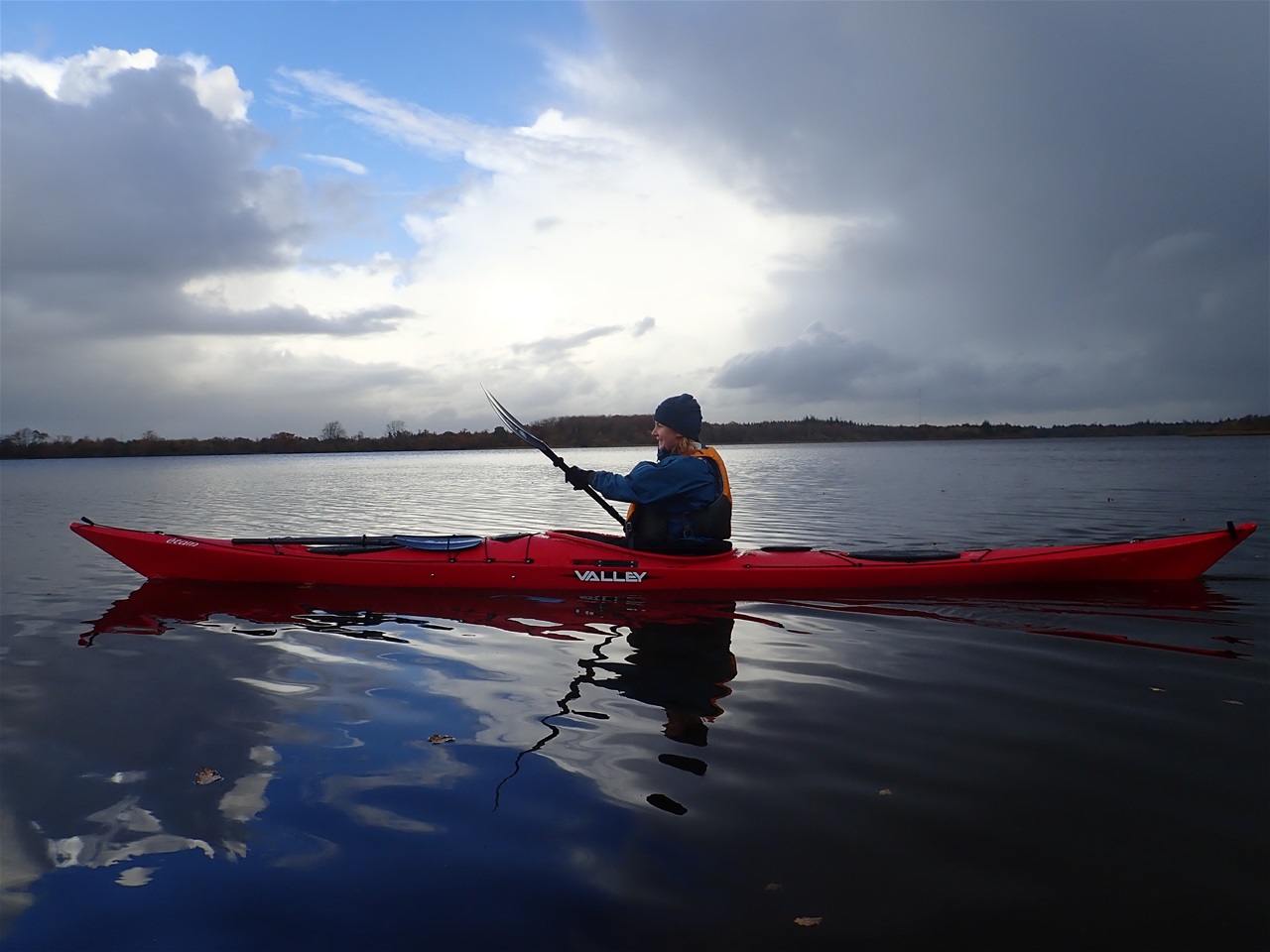 Så fik jeg købt min helt egen kajak og det mest basale udstyr i form af støvler, neopren dragt, jakke, handsker og svømmevest. Tak til Brian og Pia ved Kajak Freak, der fandt nogle fine ting til mig. Vi skulle naturligvis have det hele (og mig) prøvet af, så grundet det lidt trælse efterårsvejr tog vi en tur til Karlsgårde Sø ved Varde.