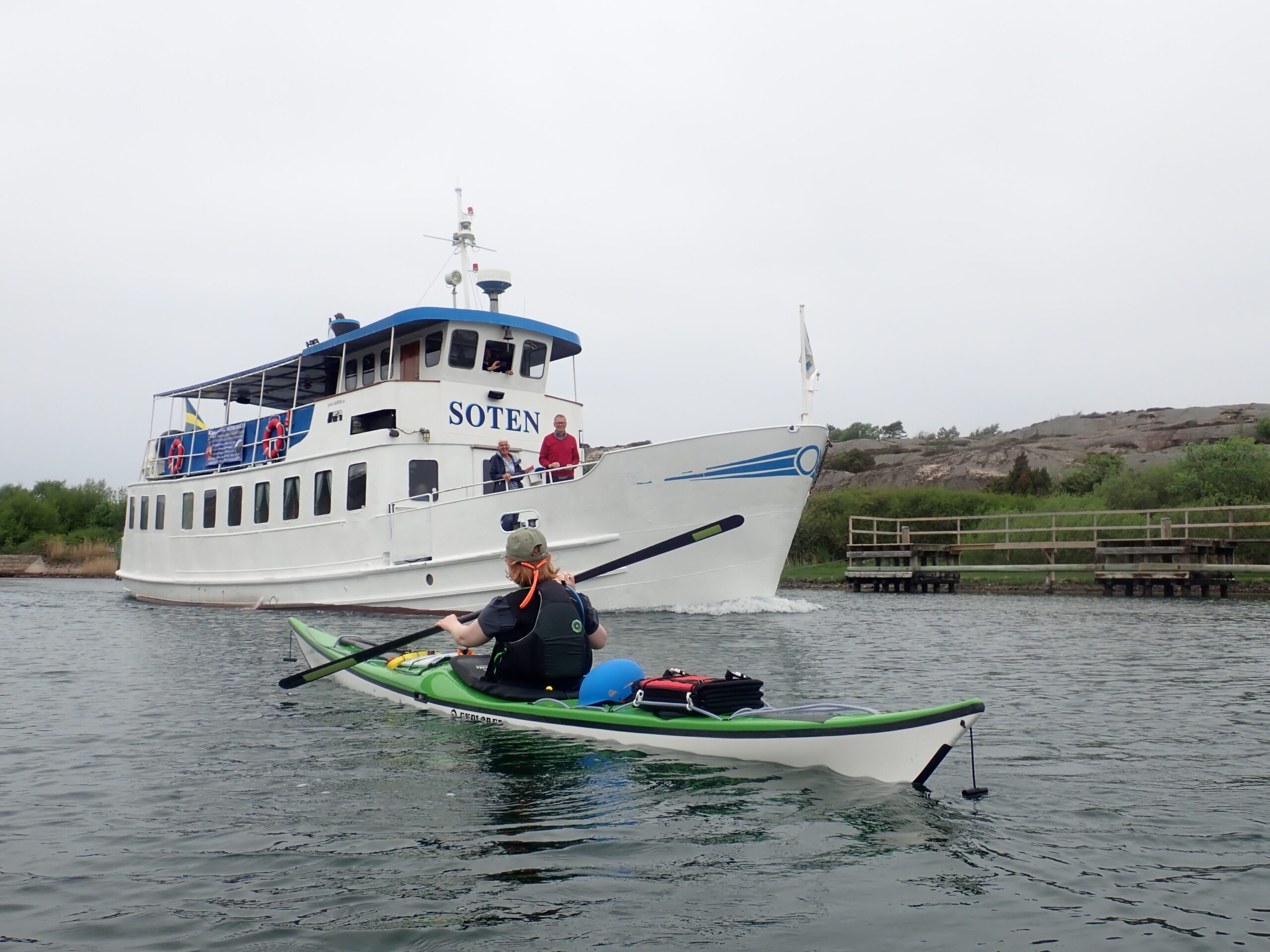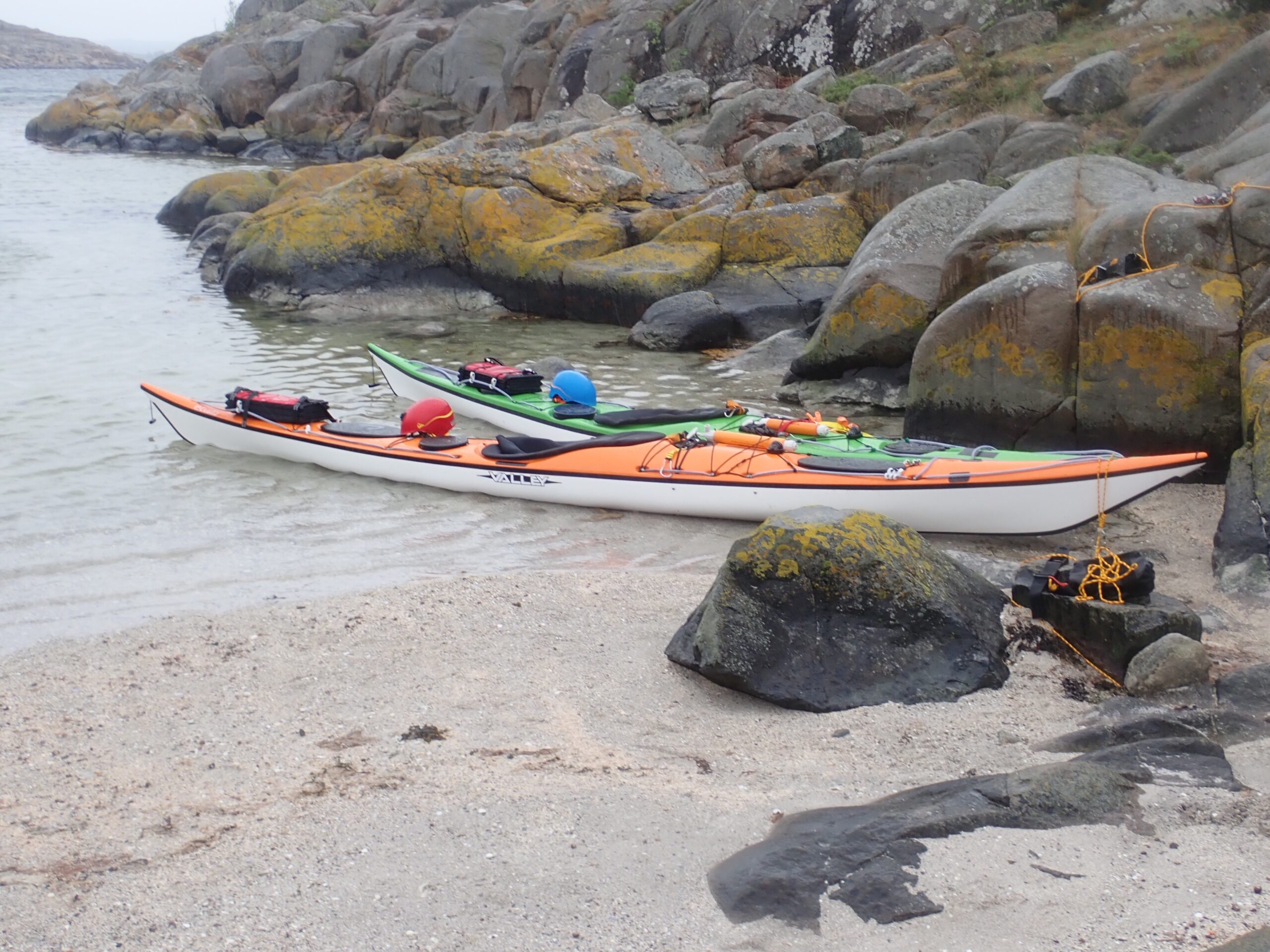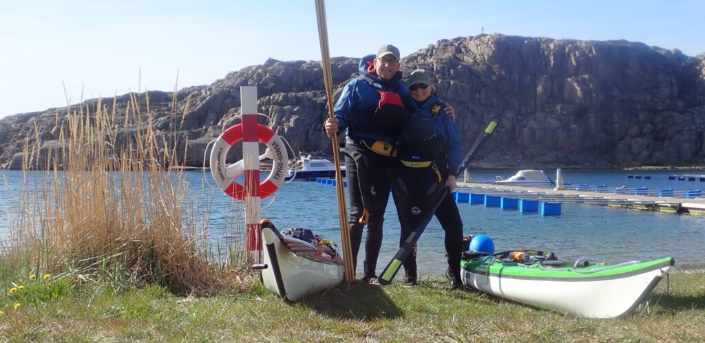 Vi er blevet enige om at blive, men at padle ind til Grebbestad efter drikkevand onsdag, hvor der er regn men lidt ophold i vinden hen ad eftermiddagen. Vi forbereder os på ikke at kunne komme videre før lørdag, hvor der igen er opholdsvejr og vinden løjer af og der er udsigt til mange fine dage i træk. Det giver os mulighed for at padle ud til Väderöerne på søndag, regner vi med…