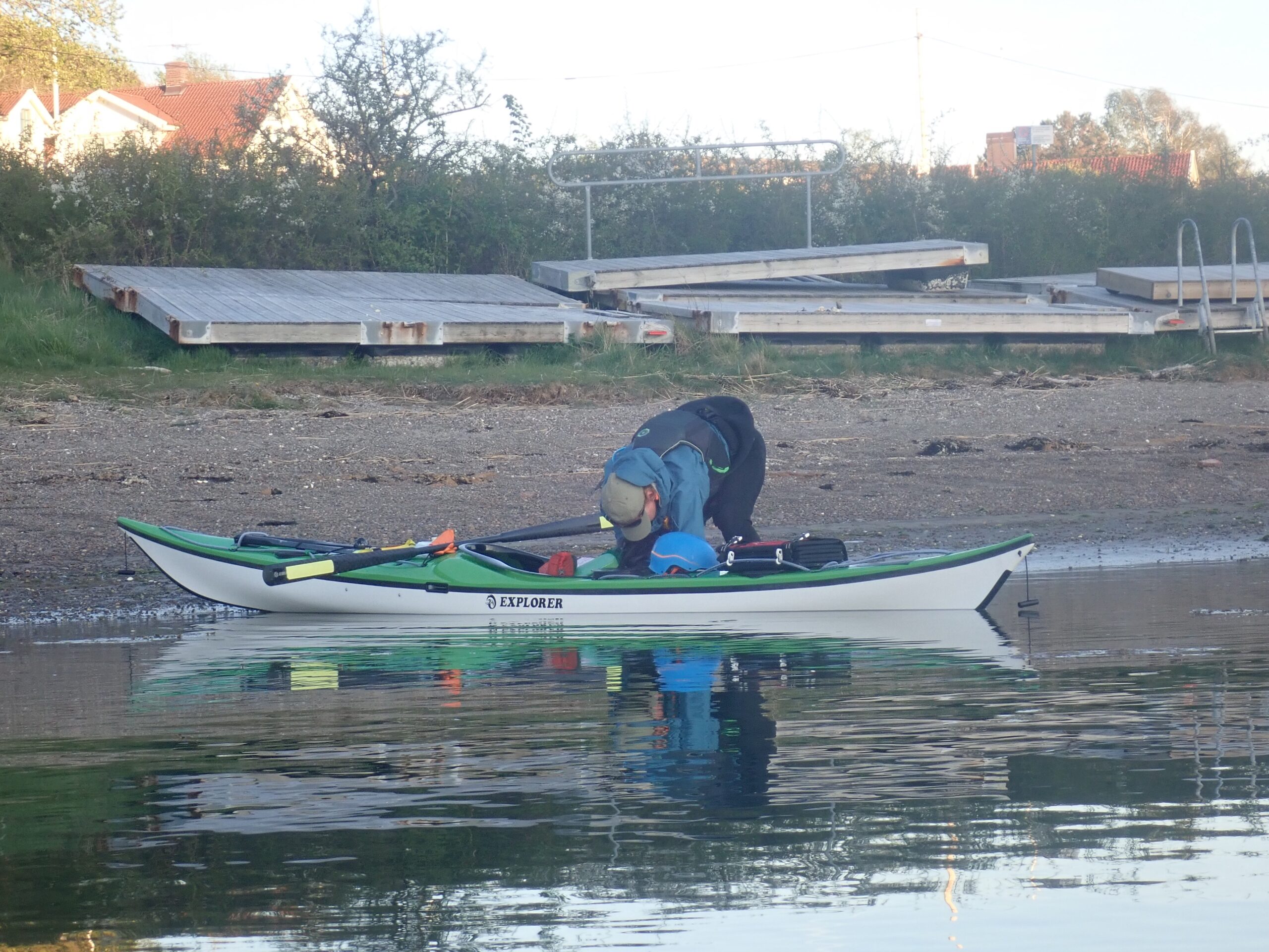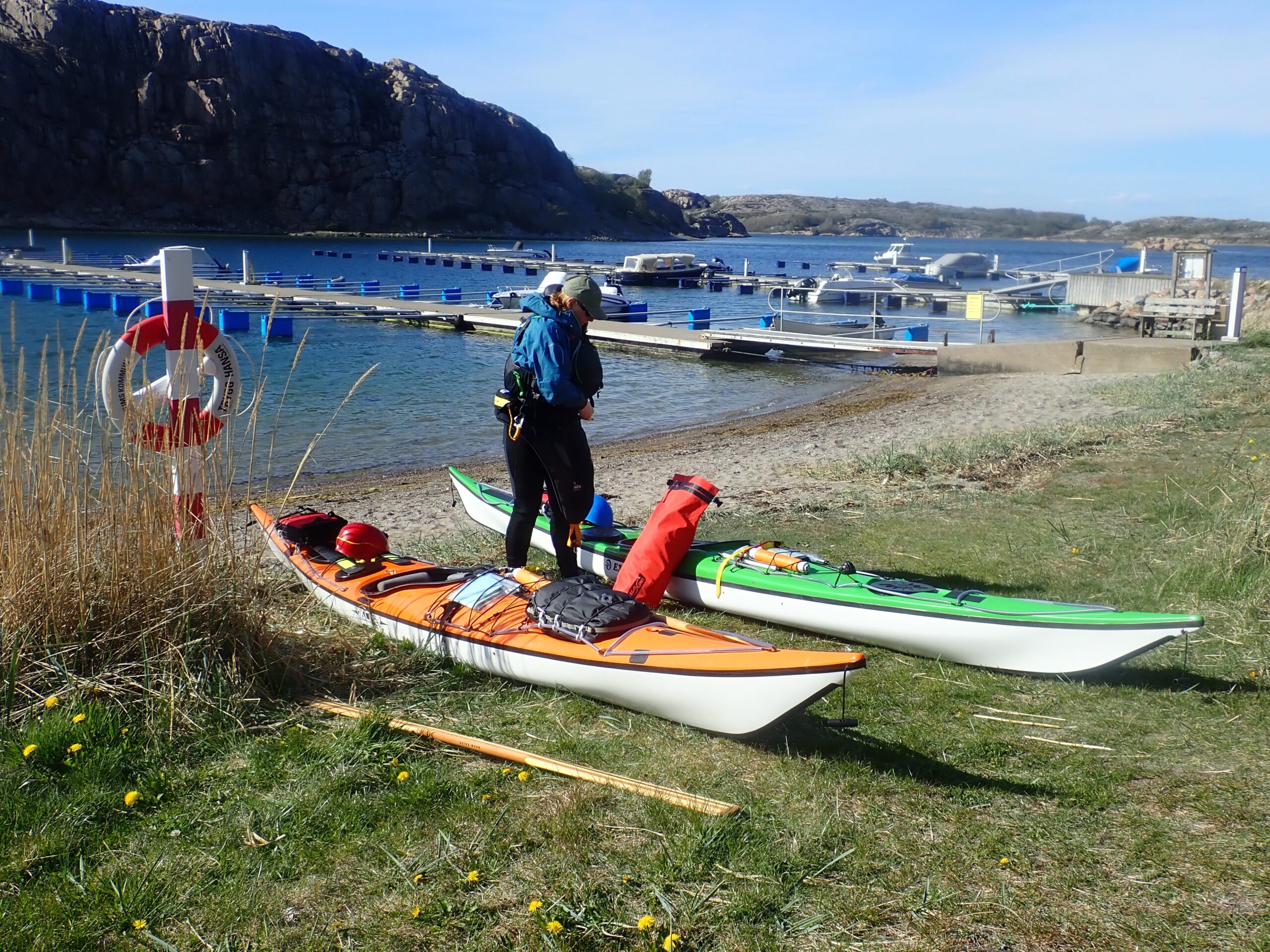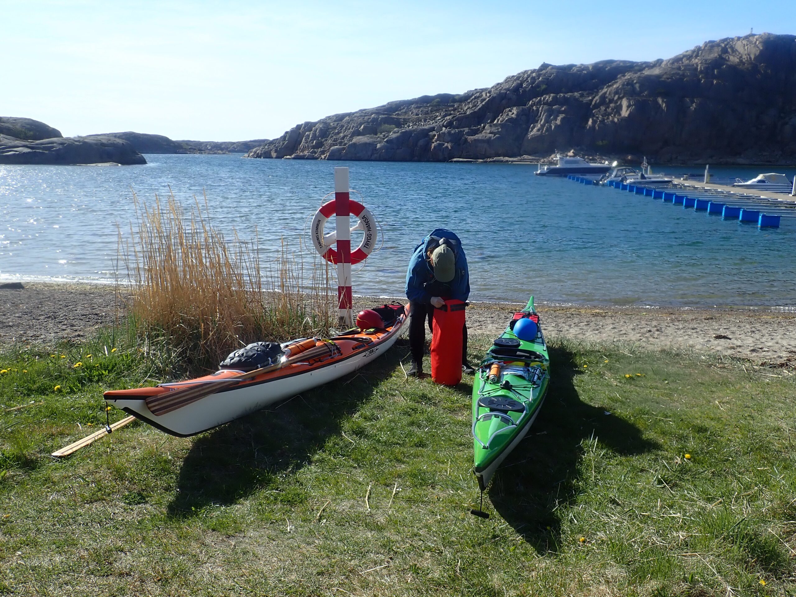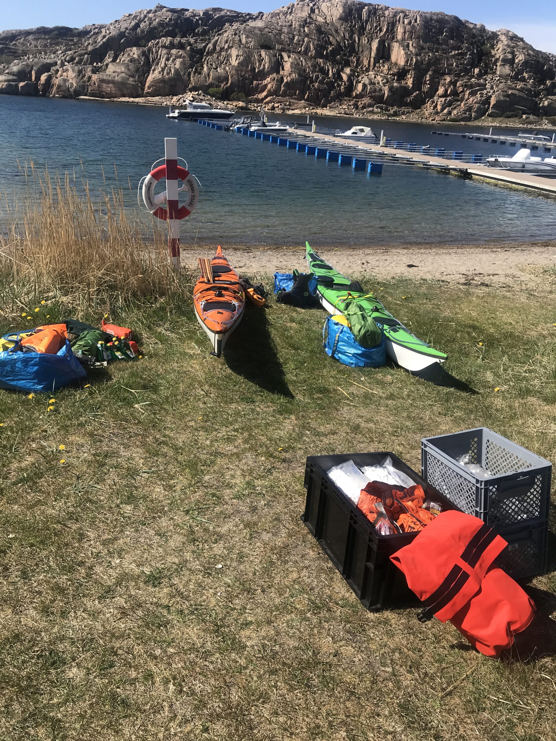 Dag 1 er lørdag den 7. Maj. Vi ankom til Hamburgsund ved en 14 tiden og fik stille og roligt sat kasser frem og pakket kajakkerne. Det hele kunne heldigvis være der.