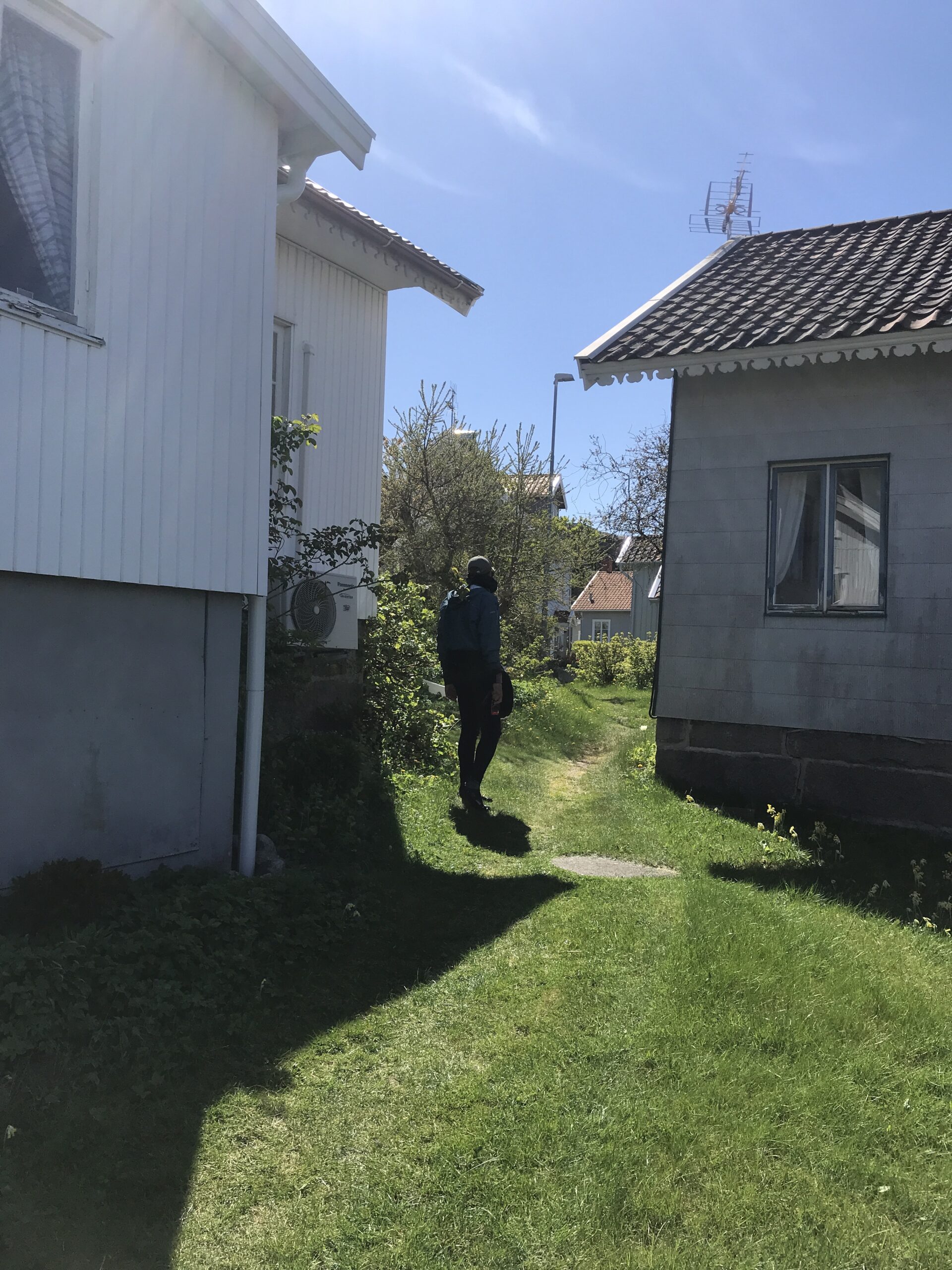 Vi fandt stien op til lodshuset, selvom den nærmest gik igennem nogens have… men det var stien, for vi spurgte os frem.
