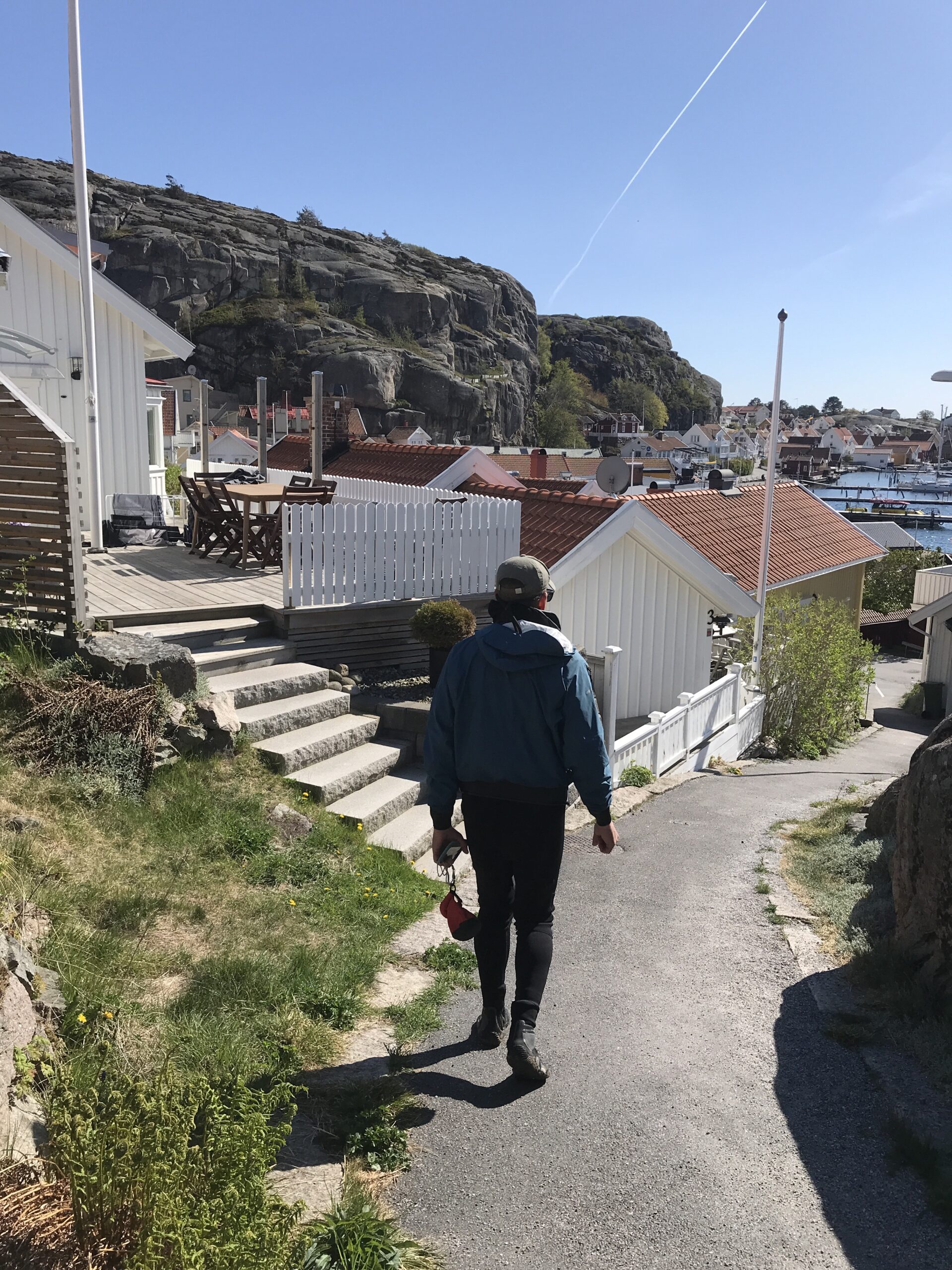 Vi trodsede modvinden og roede ind til Fjällbacka. Det var svært at ligge til ved havneanlægget. Man havde faktisk lidt følelsen af at være i kørestol og afskåret fra at komme ind. Sådan siddende nede og kiggende op på de riges borde 🙂