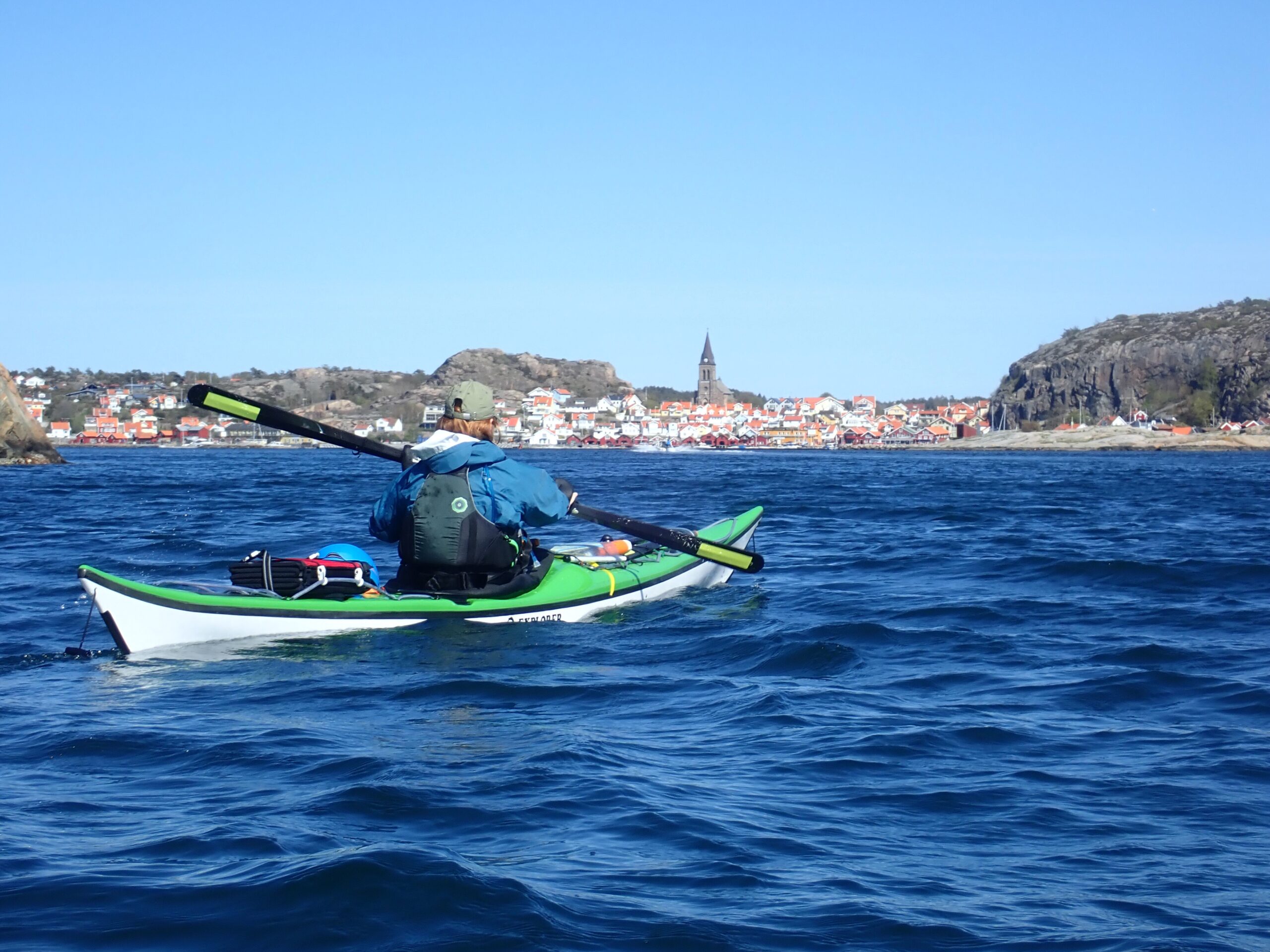 Mandag kom vi på vandet igen. Vi skulle proviantere i Fjällbacka og videre til Hamburgsund og få resten af provianten fra bilen over i kajakkerne. På grund af vinden har vi droppet at ro nordover og vi har ligeledes lagt Väderöerne på hylden. Nu vil vi prøve at komme sydover og se lidt ny kyst og skærgård.