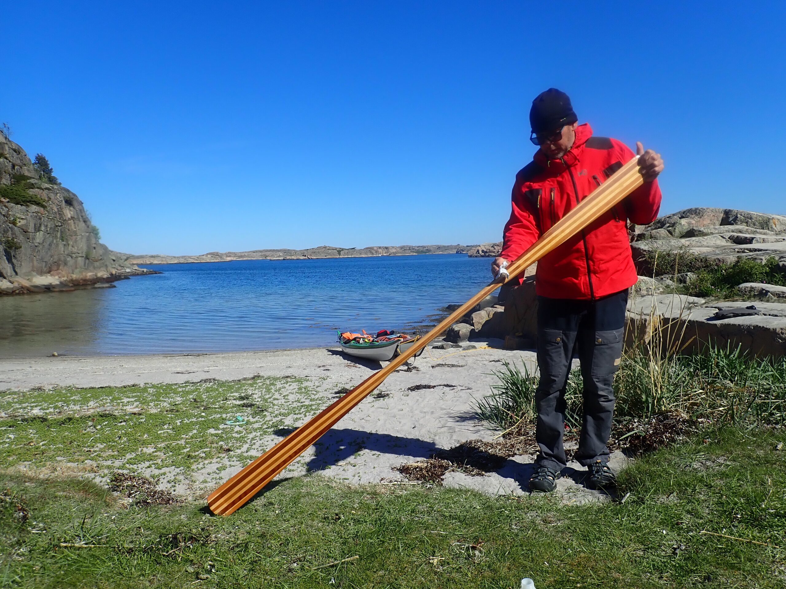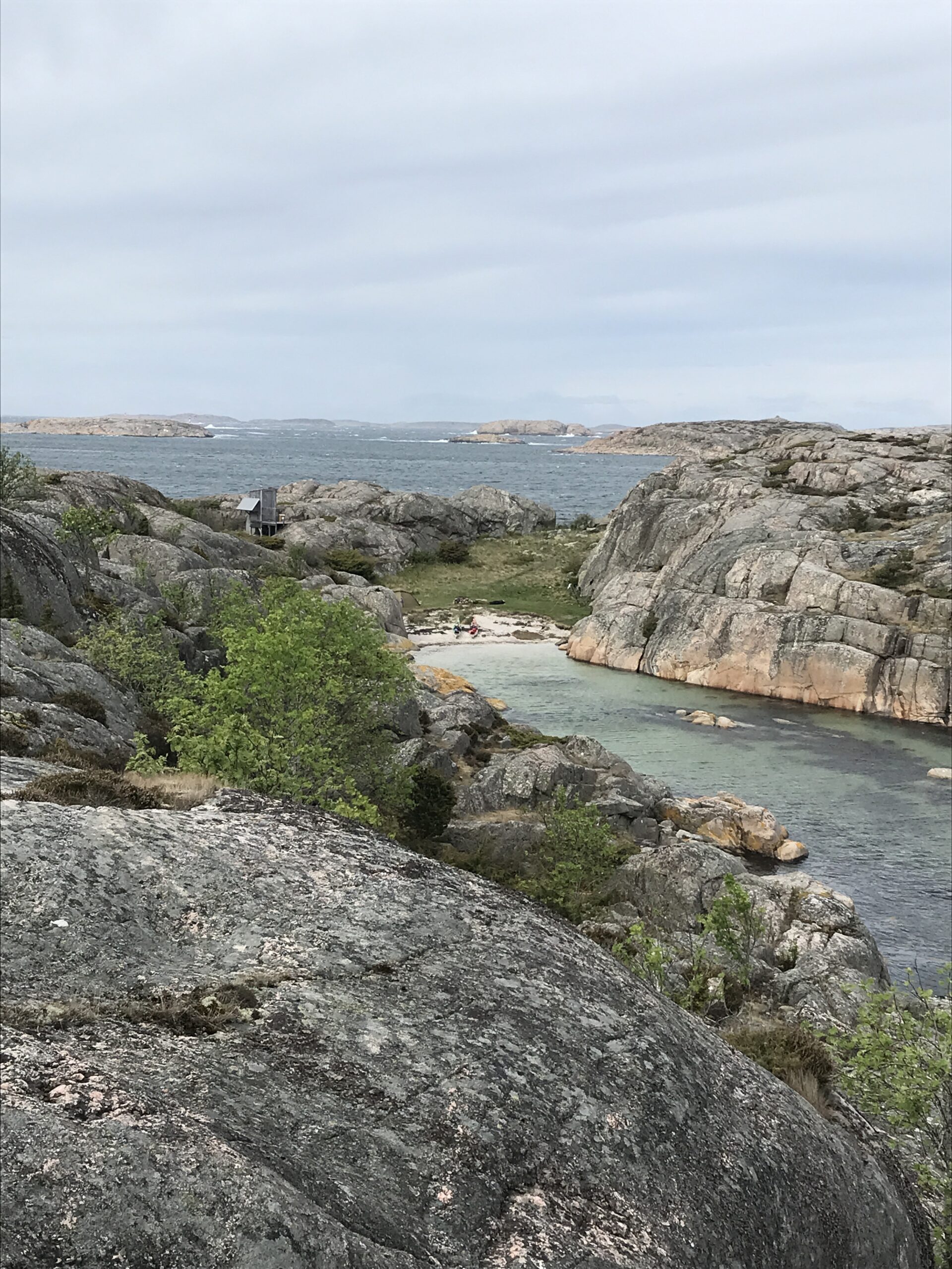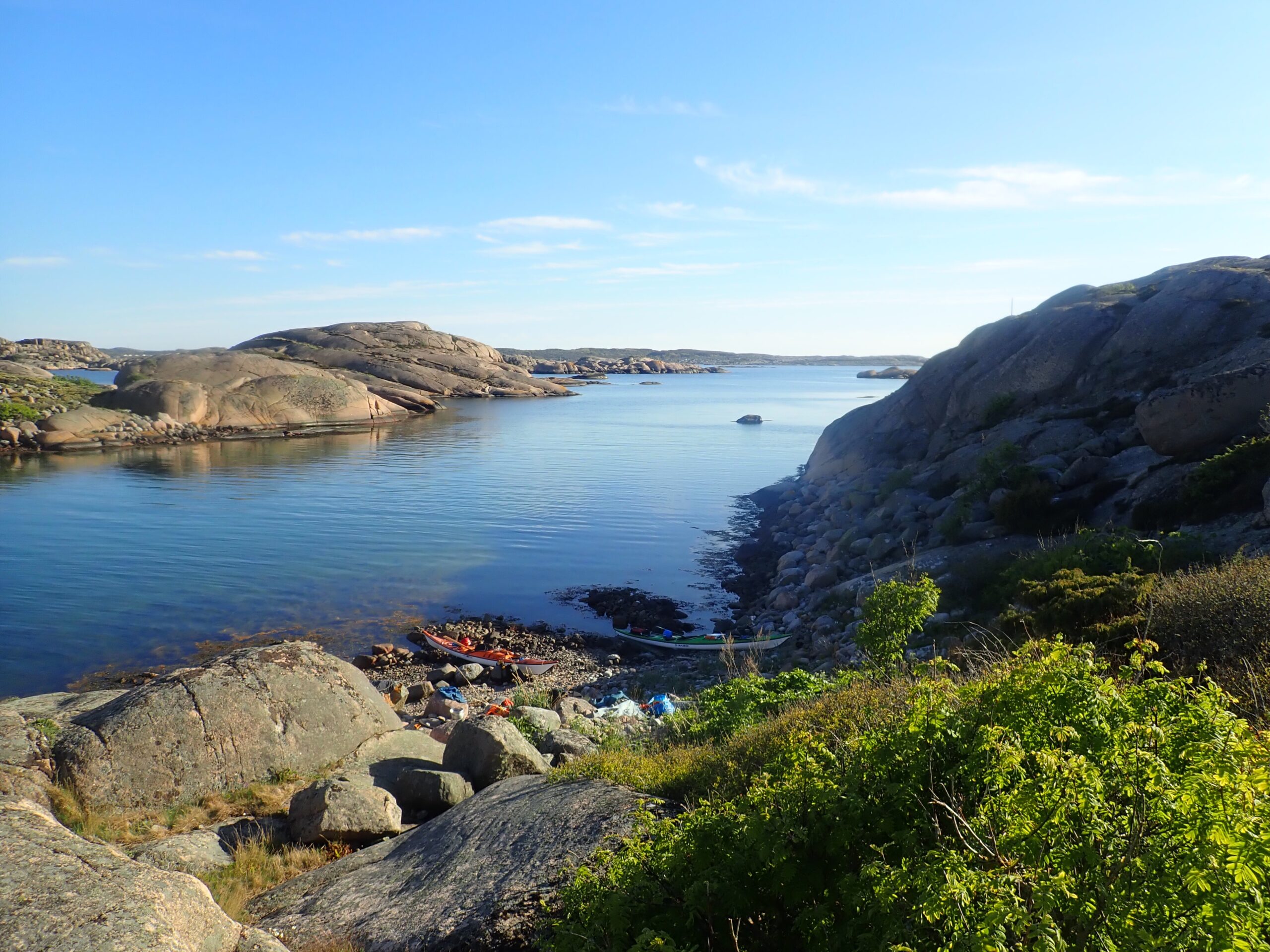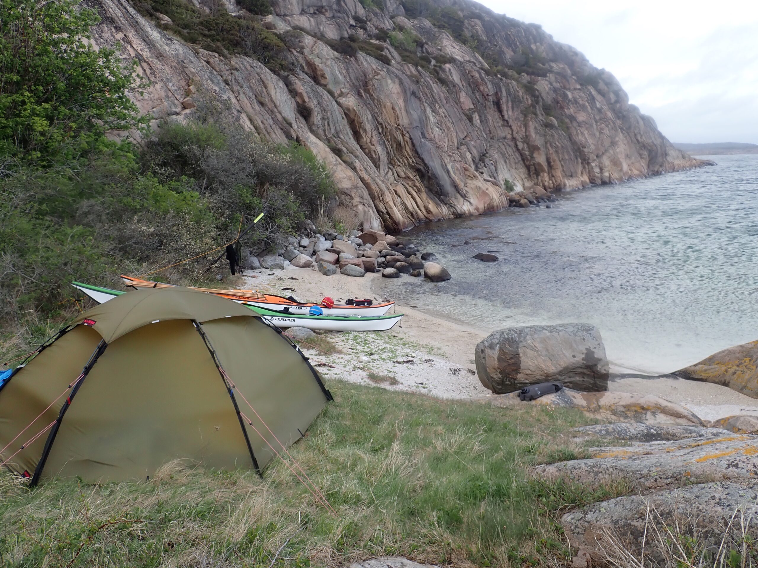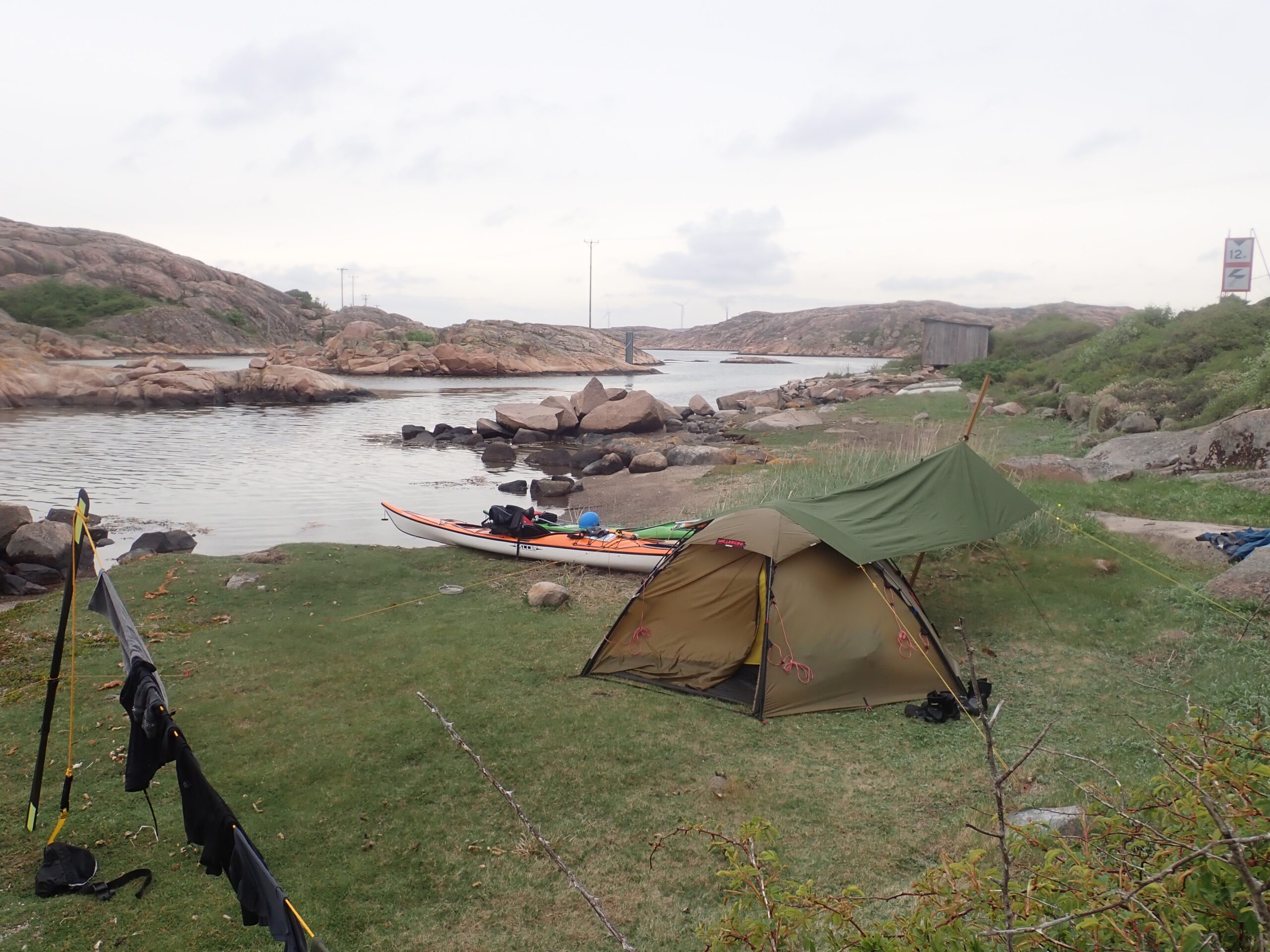 I dag fik vi sammenlagt padlet 19 km og er nu samlet på 156 km. Vi er vel installeret i teltet og vi har hørt gøgen, så alt er som det skal være. I morgen regner vi med vind og regn, så det bliver endnu en overligger dag i teltet. Hvis vinden ikke er for træls tænker vi dog et tage et smut til Käringön. Vi må se.