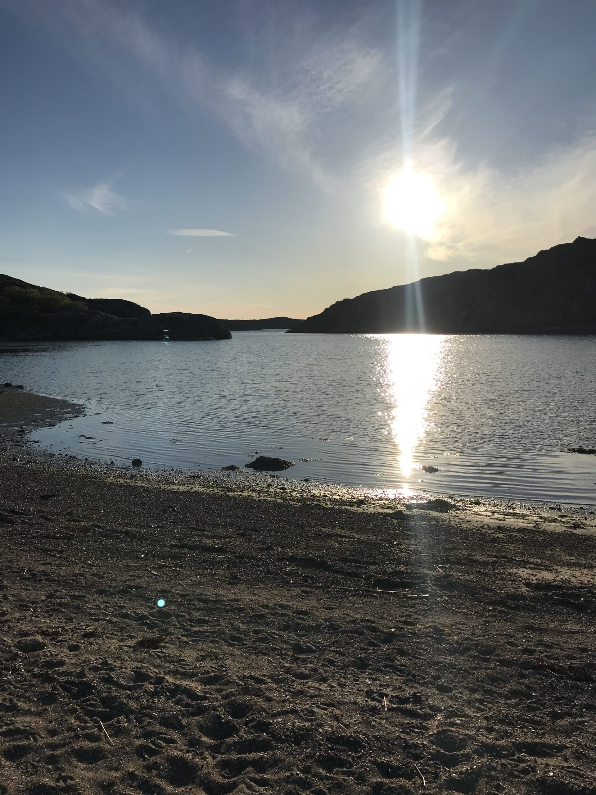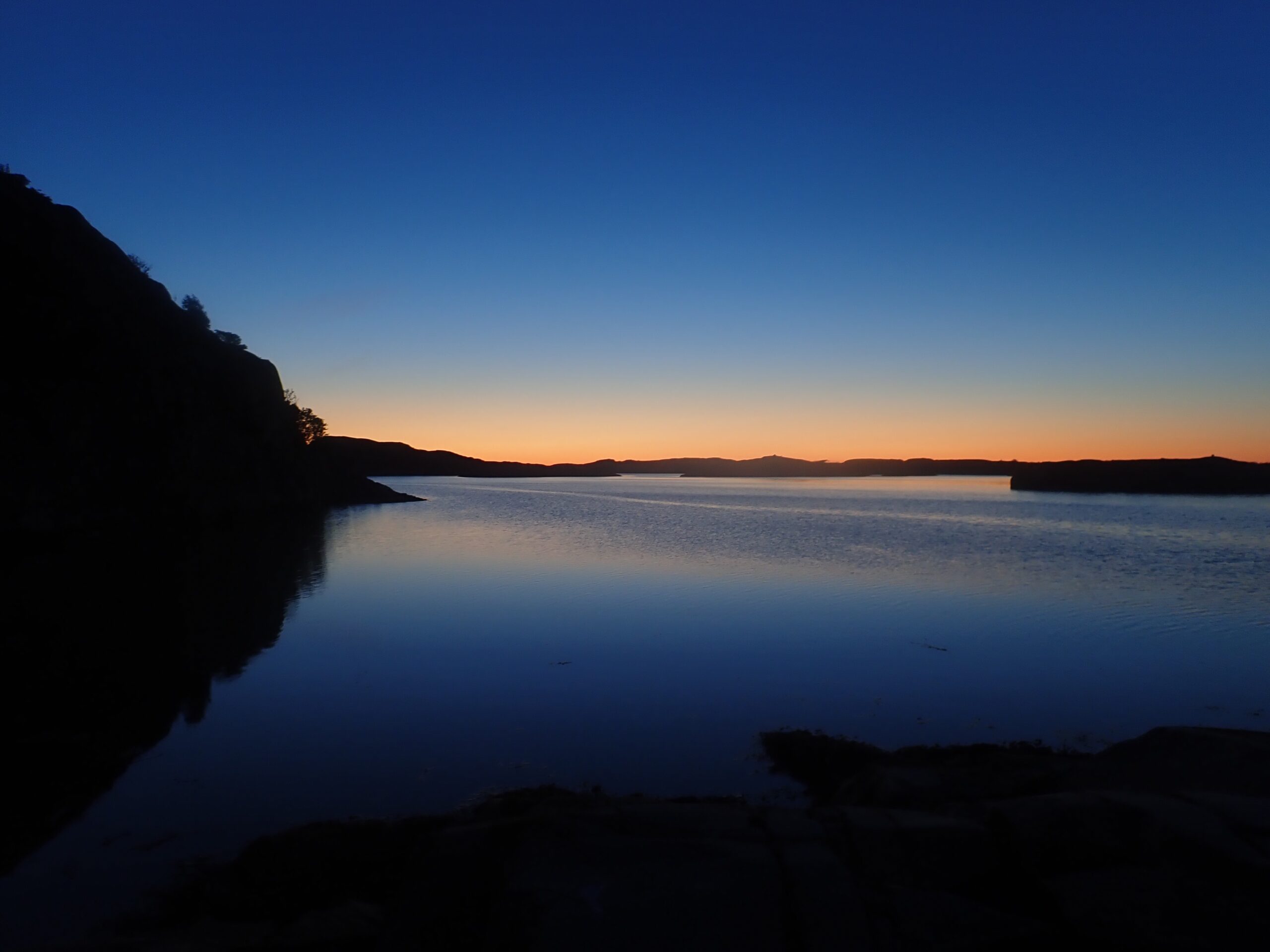 Vi fik sat en fin lejr og for første gang fik vi også den smukkeste aftenhimmel. Efter kl 23 kunne man stadig se aftenrøden i horisonten samt en smuk rund måne.