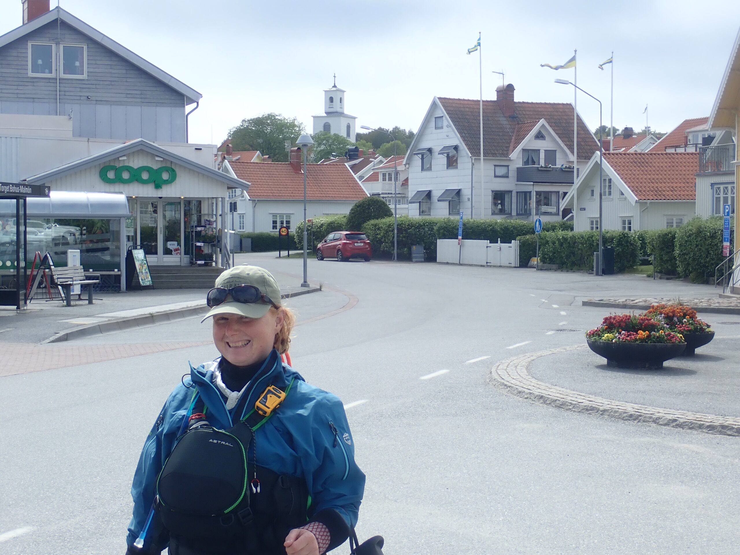Fredag blev en lidt kortere dag i kajakken. Inden vi satte ud, skulle vi, som vi plejer lige have styr på kortet og lagt en rute. Vi roede et par kilometer til Bohus-Malmön, som om sommeren er et meget mondænt og velbesøgt sted med en flot Marina men også en fin natur. Her fik vi handlet lidt i Coop – æbler og chokolade – og det blev da også til en muffin, som vi kunne nyde på en trappesten.