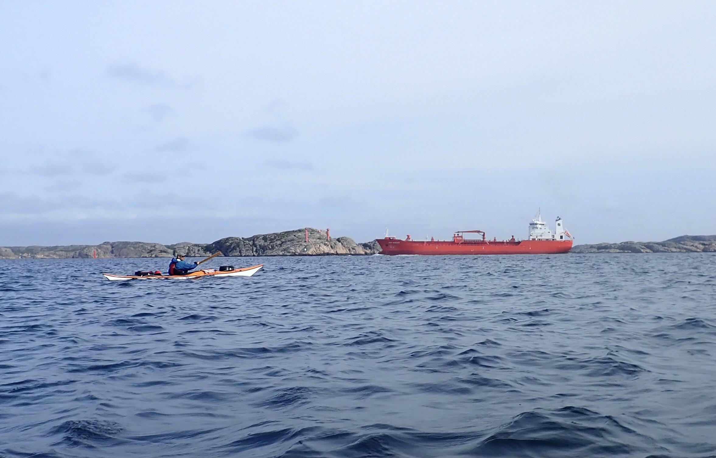 Vi skulle også lidt holde tilbage for et skibe, det var på vej ind i sejrenden til et olieraffinaderi der ligger inde på fastlandet.